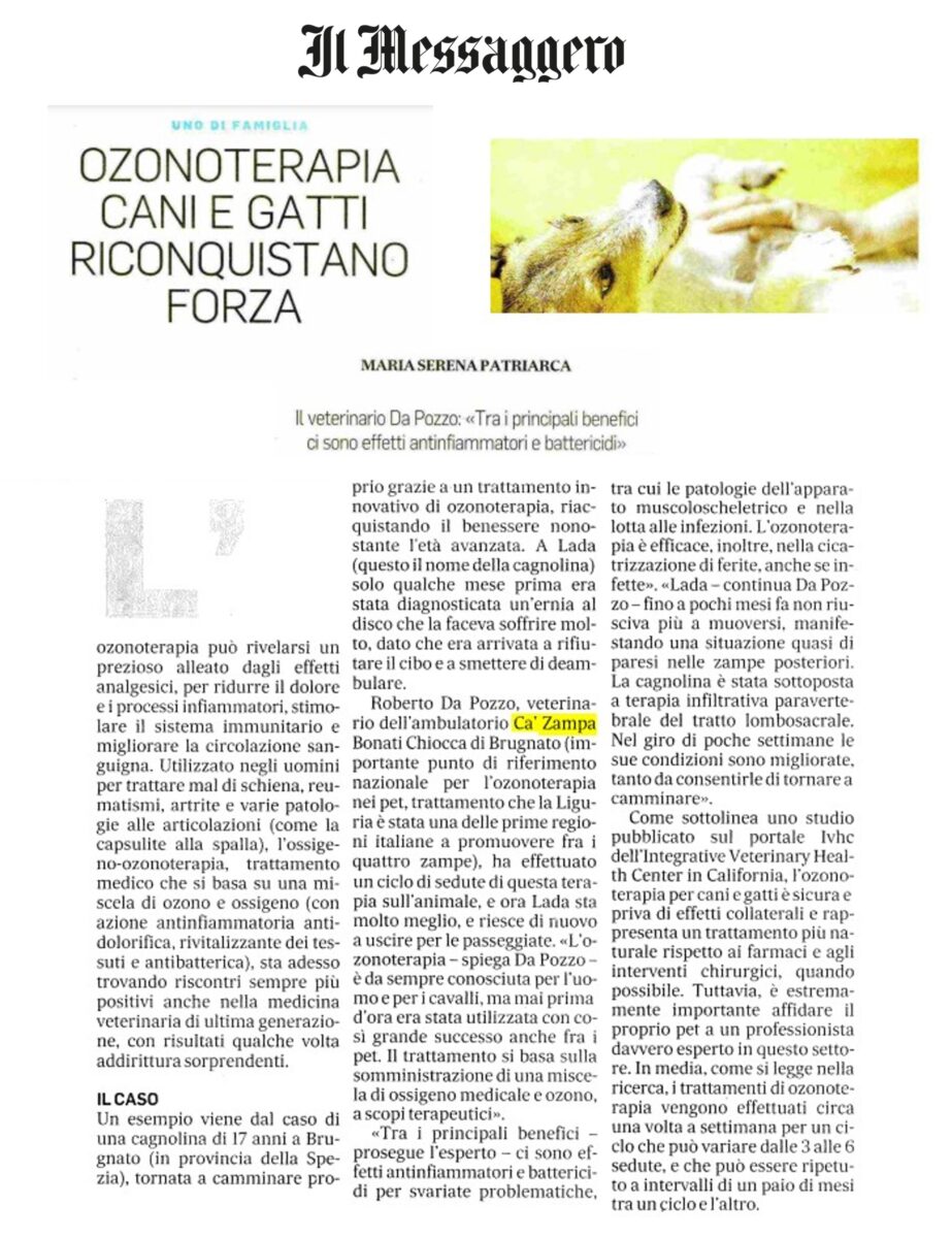 Con l’ozonoterapia cani e gatti riconquistano forza. Scopri di più su Il Messaggero